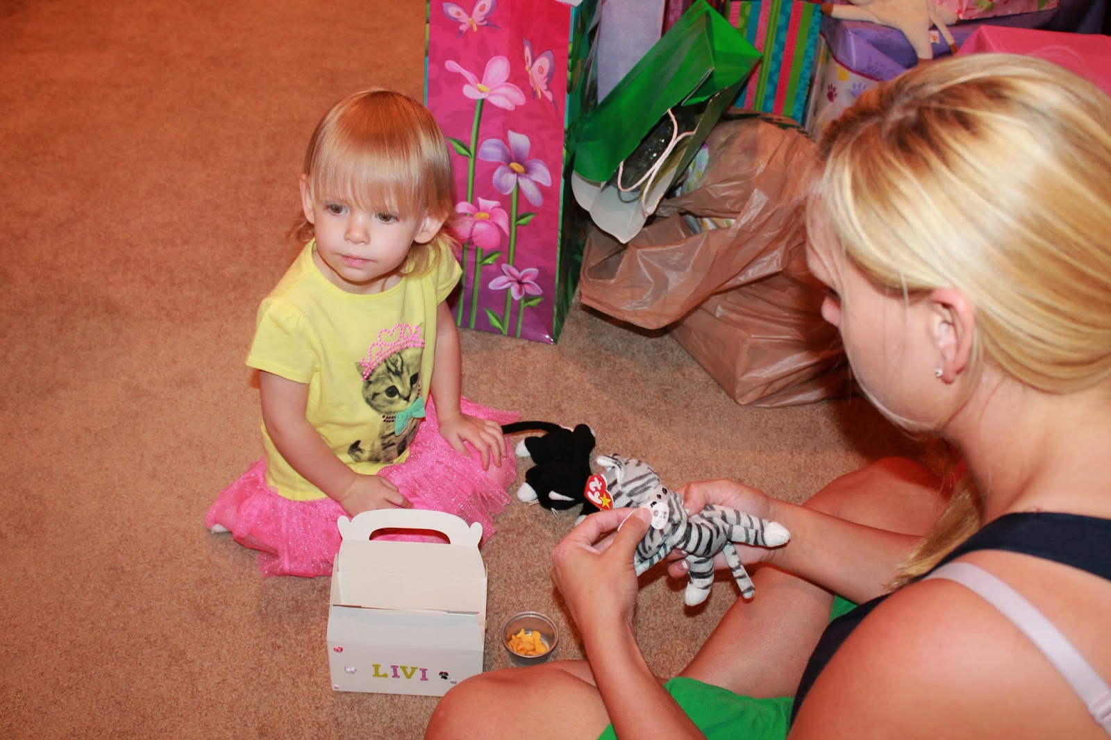 Livi's 2nd Birthday was a huge hit! I wanted to do something very similar to Build-A-Bear since she loves that place and it all worked out perfectly. Each child picked out a cat, made a collar (with name tag, bell and jewels), gave their cat a bath, had it checked out with the veterinarian (A.K.A - Daddy), decorated a take home pet carrier and visited the pet store (where they could pick up cat treats, a food/water dish and a cat toy). I think all of the kiddos enjoyed it!
